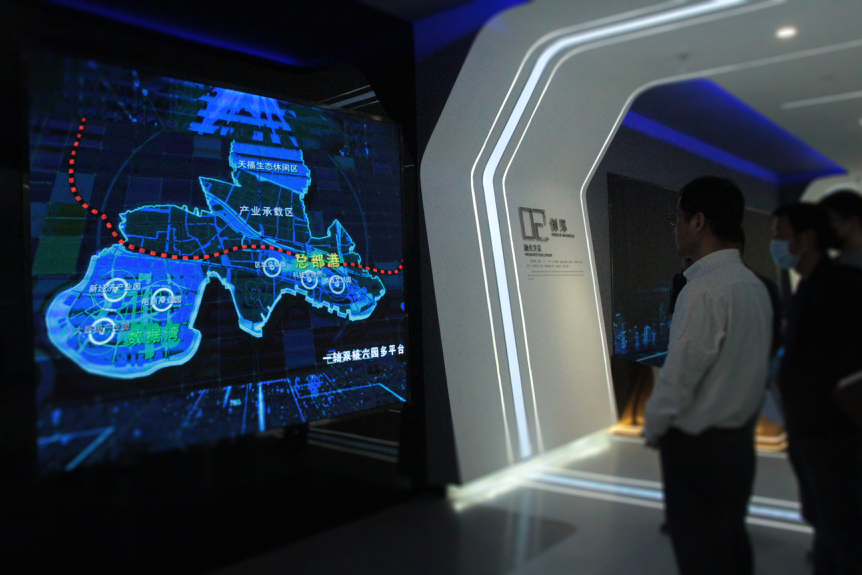 展館從五大板塊——“創啟-蓄勢展翅”、“創見-融合發展”、“創開-動能集聚”、“創新-聚力騰飛”、“創想-預見未來”對花橋進行全方位、立體化展示。