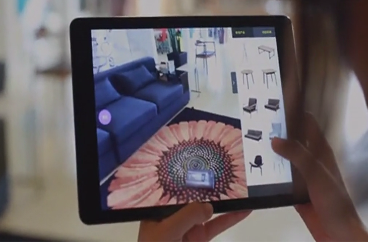 這是AR基本的展現(xiàn)形式,也是應(yīng)用很廣的,如魔法百科的AR早教卡、宜家的AR家具APP。