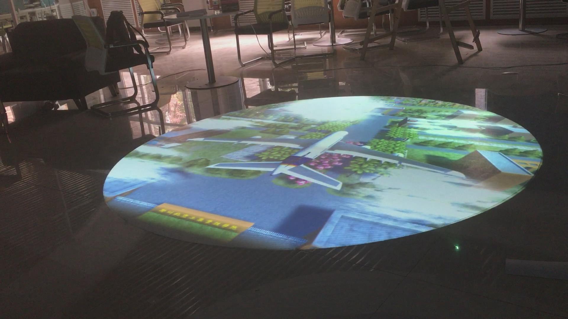 地面互動投影是一種新型的投影展示形式,利用投影機將畫面投射在普通的地面上,會產生各種神奇的景象,而當人們從投影區走過的時候,地面上的影像就會發展奇妙的變化,讓人們仿佛置身于真實的環境中。