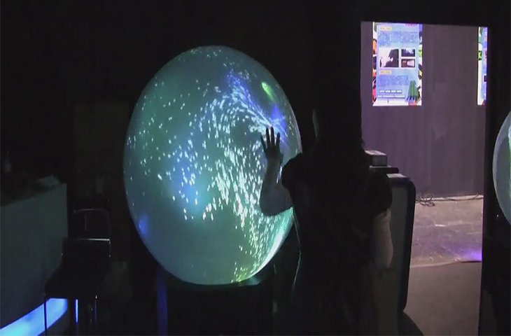 3、投影畫面投射到透明的投影幕,看起來就像是一個真實的球體在運動。